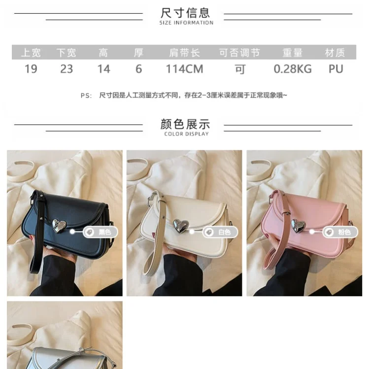 Adorn yourself with this "Fashion Bag," a charming and versatile accessory perfect for any occasion. Crafted from high-quality PU leather, this handbag offers both a sophisticated look and comfortable wear. It easily transitions from a stylish armpit bag to a convenient crossbody with its adjustable strap. The lovely heart clasp adds a touch of romance to its elegant design. Ideal for your daily essentials, this bag combines fashion and function beautifully.