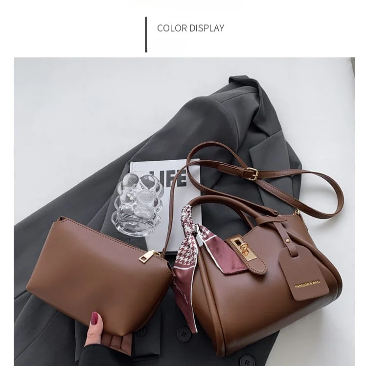 Turn heads with this high-end Korean-style bucket handbag—a perfect blend of retro charm and modern elegance. Crafted from premium soft polyester with a luxe leather finish, this bag features a structured silhouette, gold-tone hardware, and a scarf accent for a chic, classy touch.